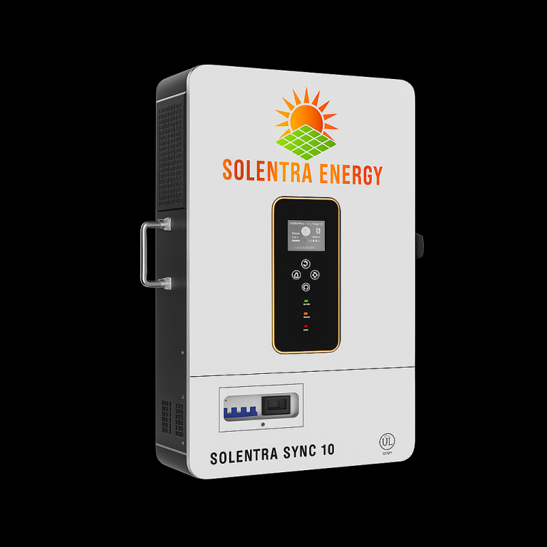 Solentra Sync 10™ is a compact, hybrid inverter engineered for seamless integration into on-grid and off-grid solar systems. Built for mission-resilient performance, this smart inverter system supports both battery backup and grid-tied applications — delivering up to 10kW of output power with UL 1741 compliance.